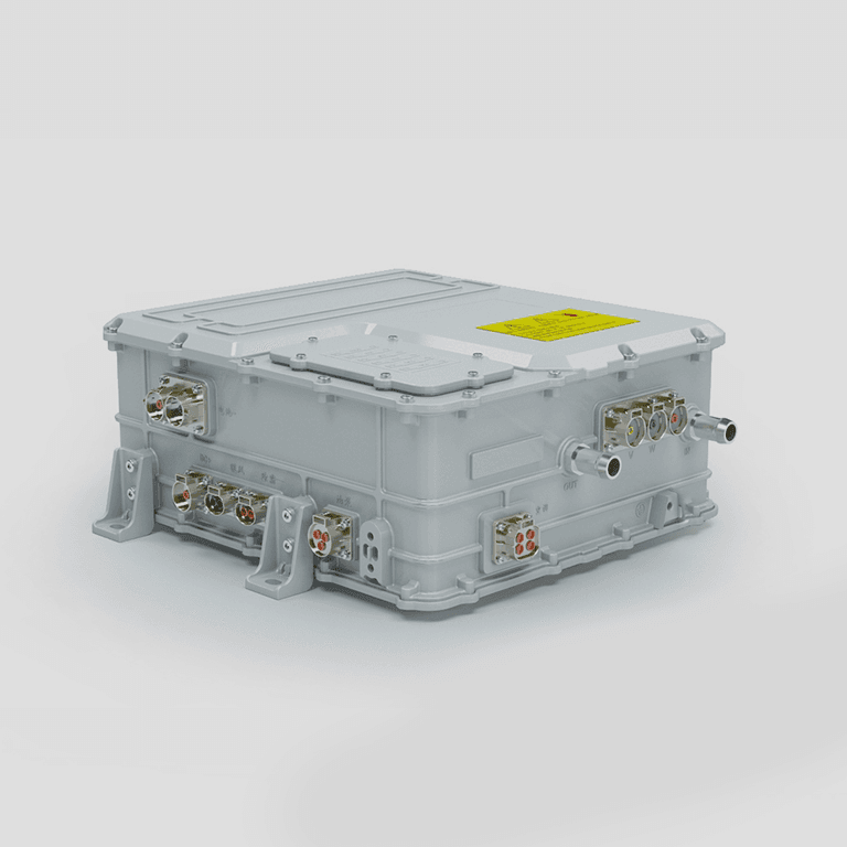 Is a device that is a bridge between a traction battery and electric motor, and also as an onboard charger and DC/DC converter. Maximum engine power that this system can serve is 110kW at the battery voltage of 450-700 VDC. This product is compliant with electromagnetic compatibility standards and is resistant to vibration and corrosion.